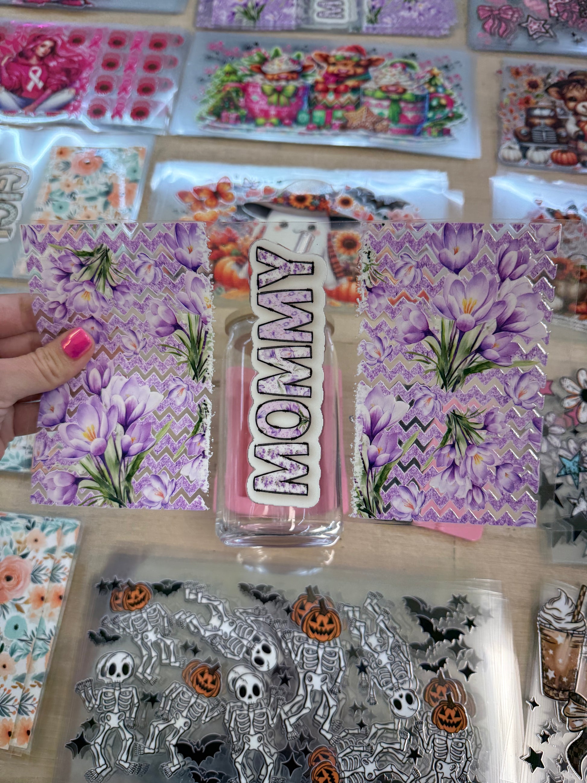 RTS MOMMY PURPLE FLOWERS CUP WRAP UV DTF 16OZ