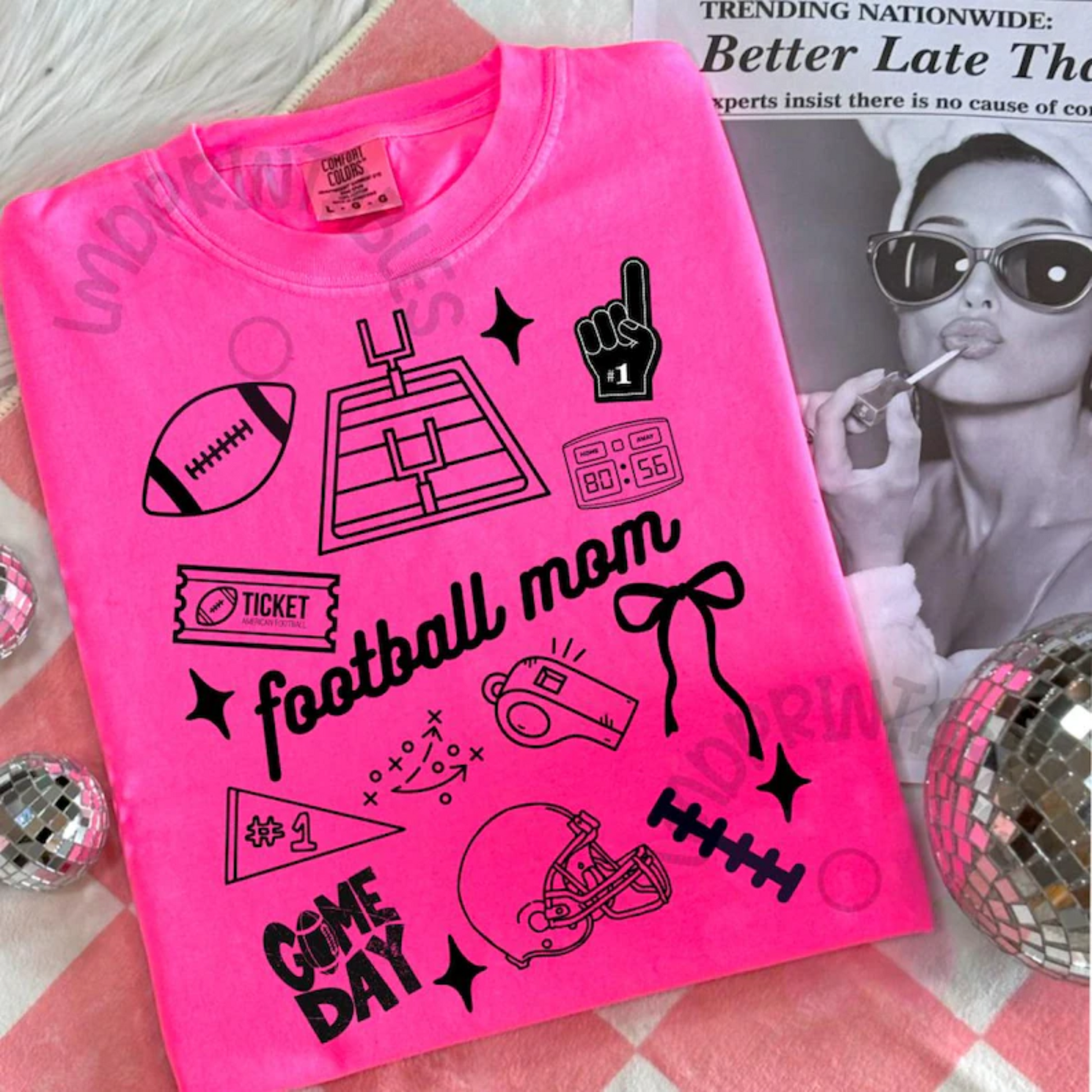 RTS FOOTBALL MOM FIELD BOW TICKET SINGLE COLOR BLACK DTF DIRECT TO FILM transfers ADULT 10X12. 2-D