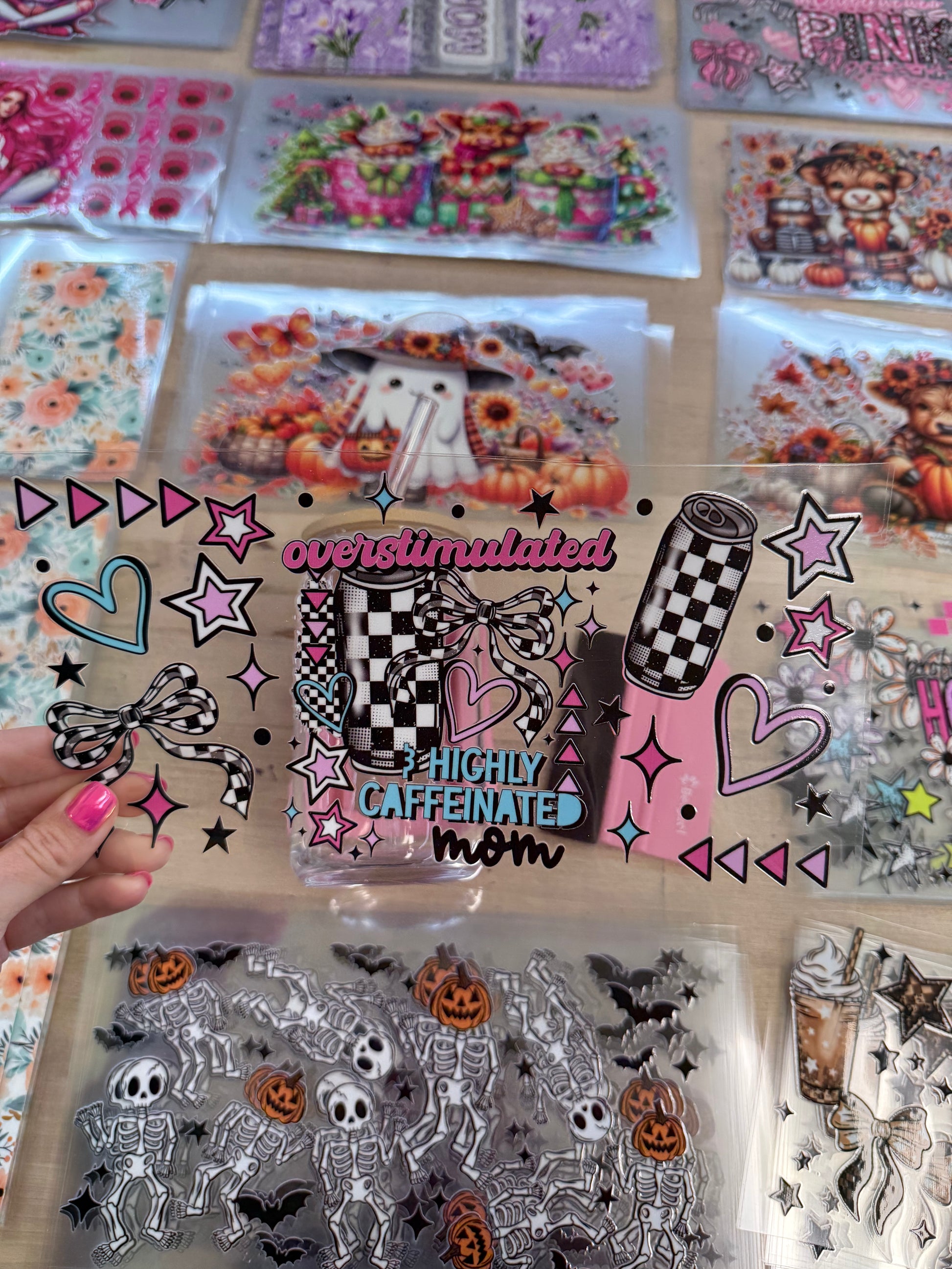 RTS Overstimulated Highly Caffeinated Mom 16 oz wrap UV DTF