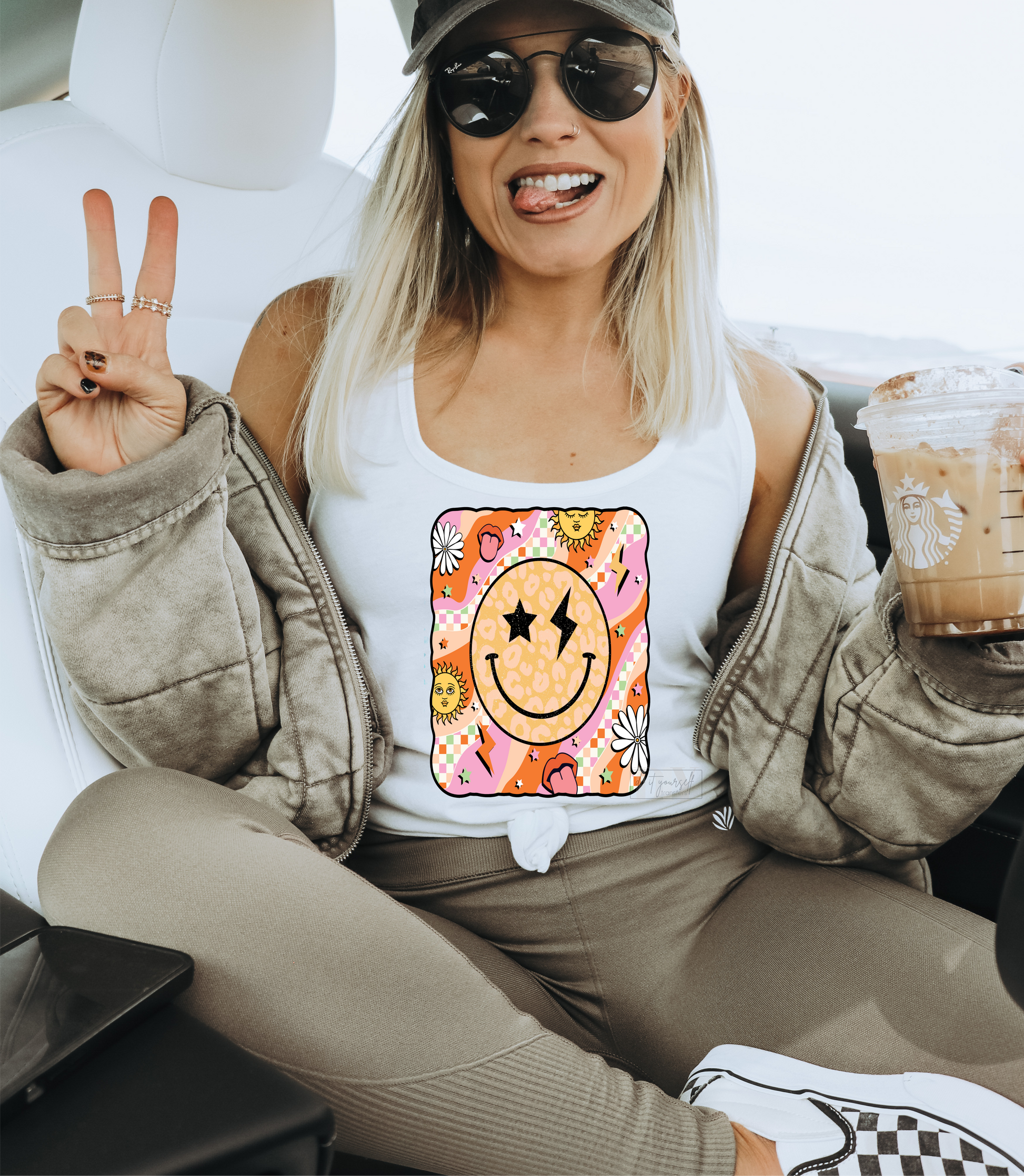 Smiley Face Frame sun lips orange pink size ADULT 9.1x11.9 DTF TRANSFERPRINT TO ORDER